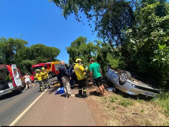 Um acidente de trânsito do tipo capotamento deixou quatro pessoas feridas na tarde deste sábado, 20 de dezembro de 2025, na BR-282, nas proximidades da Sede Figueira, em Chapecó, no Oeste catarinense.