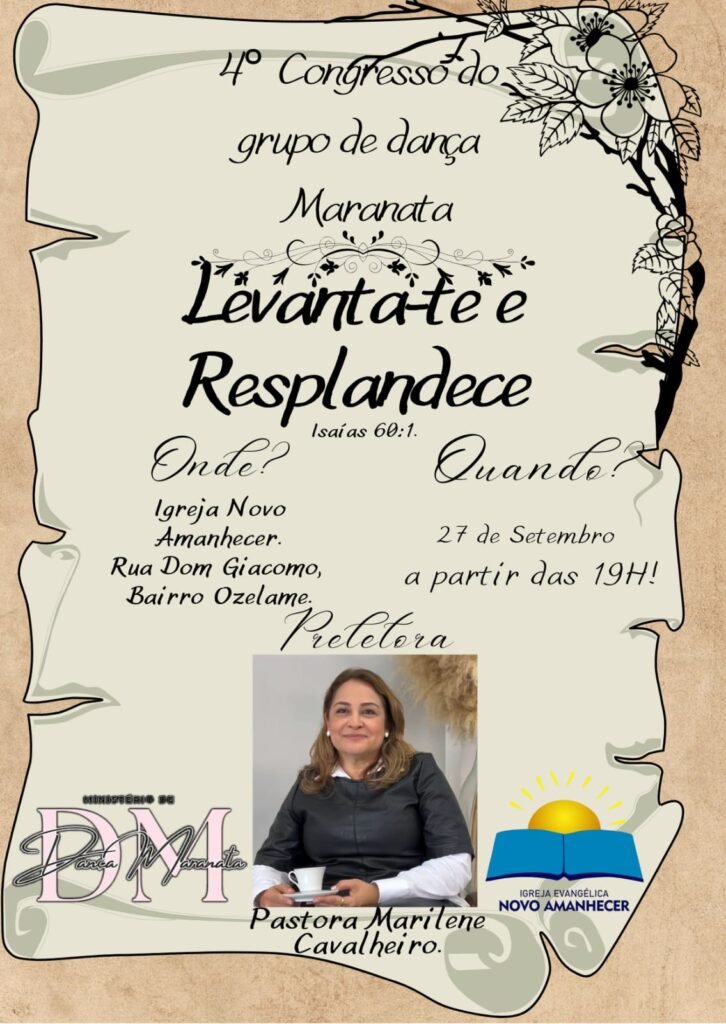 Na noite do último sábado (27), a Igreja Evangélica Novo Amanhecer, através de seu Presidente Pastor Moacir Taparello e Pastora Margarete Taparello em Faxinal dos Guedes, sediou o 4º Congresso do Grupo de Dança Maranata, que teve como tema “Levanta-te e Resplandece”.