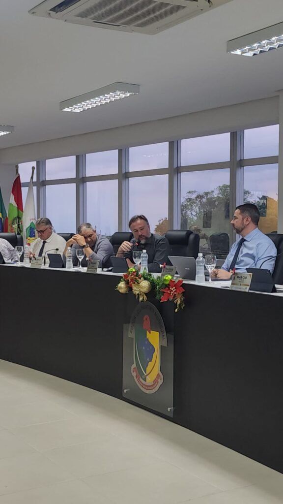 Durante sessão na Câmara de Vereadores de Faxinal dos Guedes, Sargento Fabiano Ozelame da Polícia Militar apresentou informações sobre as atividades da corporação no município e respondeu a questionamentos sobre temas ligados ao trânsito e à segurança pública. Entre os assuntos abordados, estiveram os pedidos de instalação de lombadas e o avanço do sistema de câmeras de videomonitoramento.